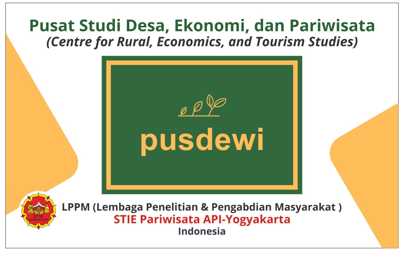 PUSDEWI merupakan unit di bawah LPPM STIE Pariwisata API Yogyakarta yang berfokus pada penelitian dan pengembangan ilmu di bidang pedesaan, ekonomi, dan pariwisata. Sebagai pusat studi yang aktif, PUSDEWI telah banyak berkontribusi dalam mendorong inovasi dan pembangunan pariwisata di Indonesia, khususnya melalui kajian-kajian ilmiah yang terbit di berbagai jurnal nasional maupun internasional. Kegiatan PUSDEWI mencakup riset terapan, pendampingan masyarakat, hingga advokasi kebijakan berbasis data untuk memperkuat potensi lokal dan pembangunan berkelanjutan di wilayah pedesaan. Saat ini, PUSDEWI dipimpin oleh Setiawan Priatmoko, PhD.